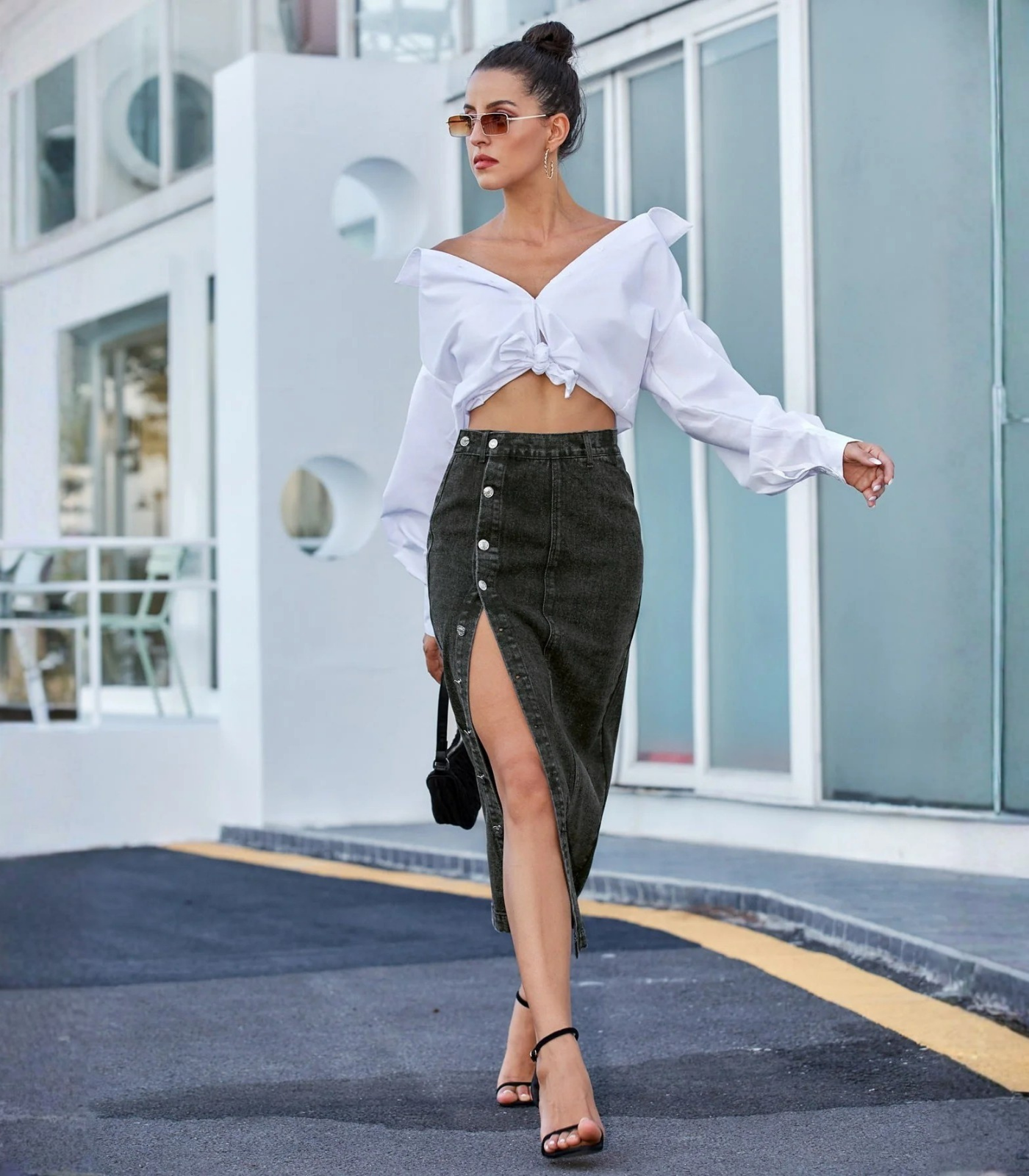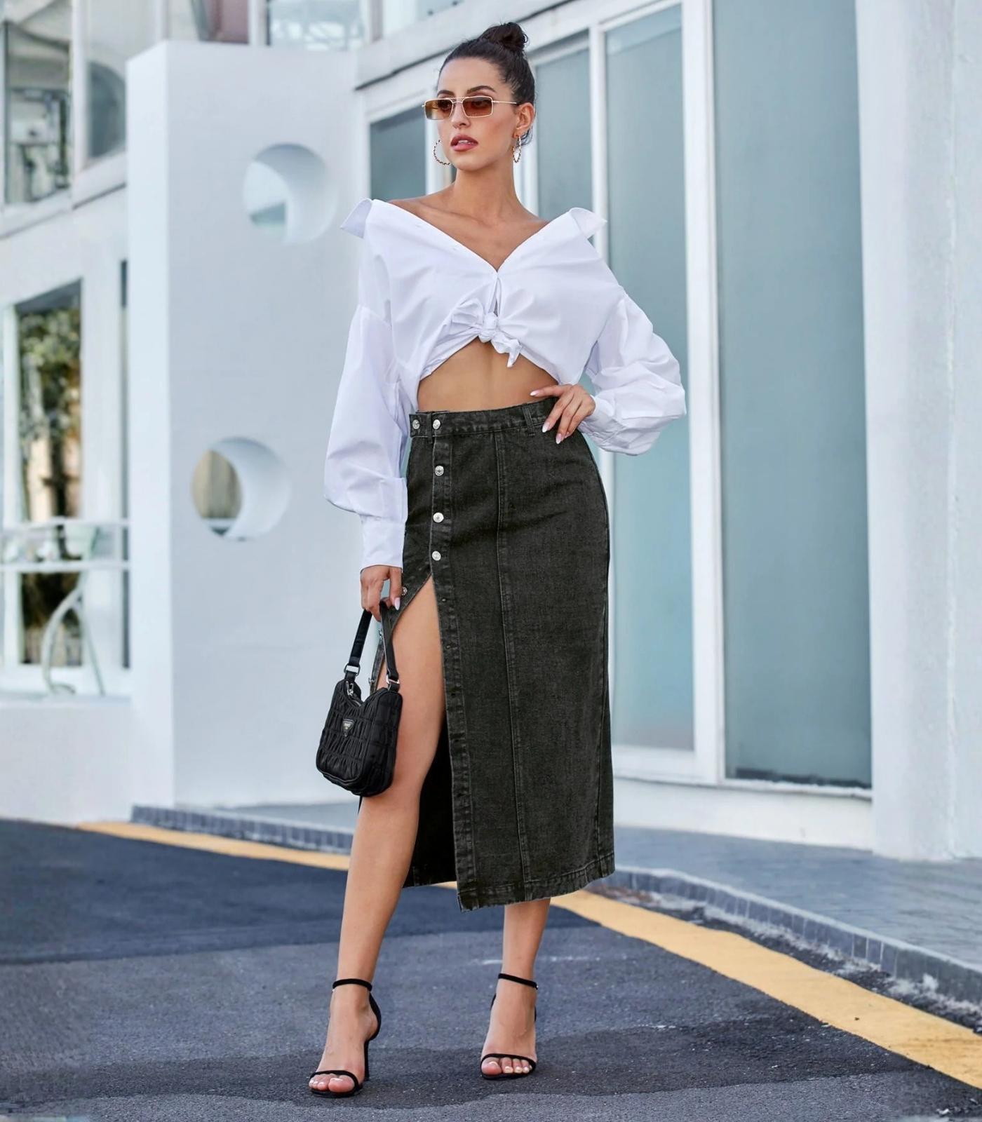 Perfetta per look da giorno con un twist deciso, da indossare con top minimal, sandali a tacco o sneakers.