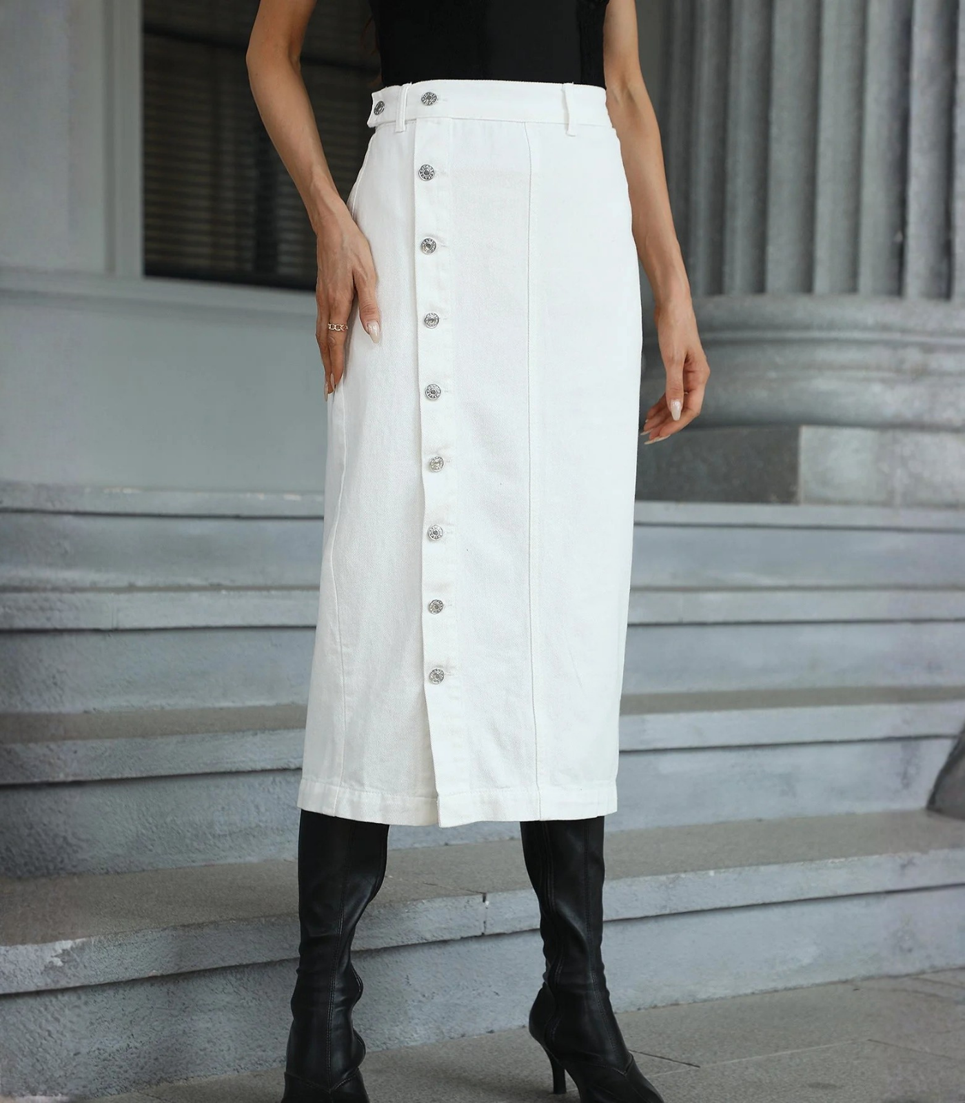 Denim Longuette - Gonna con Spacco e Bottoni Frontali